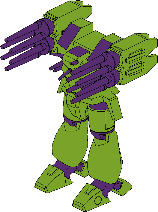 did not live up the potential desired by REF High Command, and was shelved. Field-improvised unit were often seen, especially after the Battle For Carbonara, and the design has gained a Renaissance in Colonial Civil Defense units. Electronics: The electronics suite on the Escalator isn't as advanced as a Raider X's would be, but it's no slouch either. The radar system is capable of tracking up to 100 targets within a 10 mile area at 100 miles with pinpoint accuracy, and can detect any non-stealth craft without hesitation. Even stealthed aircraft have trouble hiding from these machines when working in pairs. Weapons Systems: Tri-Barreled Laser Cannons comprise both arms. An advanced computer targeting/radar system increases the guns accuracy. Double Laser Arm: A rarely seen variant doubles up the main laser arms. This places enormous strain on the power plant, especially under longer term use, but puts enough firepower out to more than justify it's use. In the normal course of such battles a pair or trio will advance to a front area laying down fire for several minutes, then withdrawing to allow another pair or trio of mecha to take the fight while the advanced units cool down. Triple Head Lasers Three lasers are built into the head-like housing. Each has a 90° arc and can be fired independently or in tandem. Dual Shoulder Mounted SRM Pods These twin missile pods are heavily armored to protect the missiles and shoulder joints of the Tri-Lasers. MM-50 Multi Missile System: This venerated SRM system is installed to maximize the power-to-target potential of the Mecha. The 04 launchers are mounted on the legs of the Mecha. Hand to hand Combat As is the case in almost all Destroids, hand to hand combat is somewhat limited due to the configuration of the arms. However the Mecha can still engage quite reasonably at arms length, with a full force punch that can penetrate many robots and PA's armor without much difficulty (if any). Armor: The armor on the Escalator is a bit less than stellar compared to most Destroids; It hasn't been upgraded since the war with the Invid, and there are no such plans soon. Survival Systems: The Escalator only has a few basic survival systems; Air scrubbers, NBC seal, and ejection seats round out the options. One of the factors leading to the REF Escalator's down fall was the lack of weapons; For essentially the same price, the RDF Escalator has essentially twice the close in firepower. However, they have a bad habit of cropping up when you least expect them, and therefore all Destroid Pilots are required to maintain their qualifications on them with a 4 hours per month simulator time. Within the REF and RDF Escalator is typically used by repair units and other rear-area commands (where damaged Excalibur's and Raider X's are just lying around). Outside the REF's and RDF's they are commonly used by various malcontents; In fact, the REF Escalator is the first Mecha noted to have been used by Palpatinian Forces (though only during field operations; the unit itself was later abandoned). Weapons systems include Tri-Barreled Laser Cannons comprising both arms, Triple Lasers built into the head-like housing with a 90° arc, twin GR-100 Mini-Missile Launchers mounted above and behind each shoulder, twin Shoulder SRM Pods, MM-50 Multi Missile System, and hand to hand combat. There are not any Escalators currently in regular UGC service, nor will there ever be; The Council itself made their opinion pretty clear when they ordered conversions to cease, and the Excalibur is already on the Council's chopping block (the last units are already scheduled for delivery; After that no more are to be accepted into service). Name: Escalator AMS-022 Model Type: Destroid Class: Civil Defense Crew: 1 Passengers: 1. MDC By Location: |